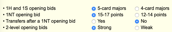 Set your bidding profile here. If you are a beginner and unsure how to set your system then use the following rules (you can always change them later):